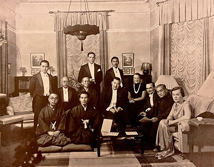 The man in a kimono, second from the left in the front row, is Kakutan Morimoto.