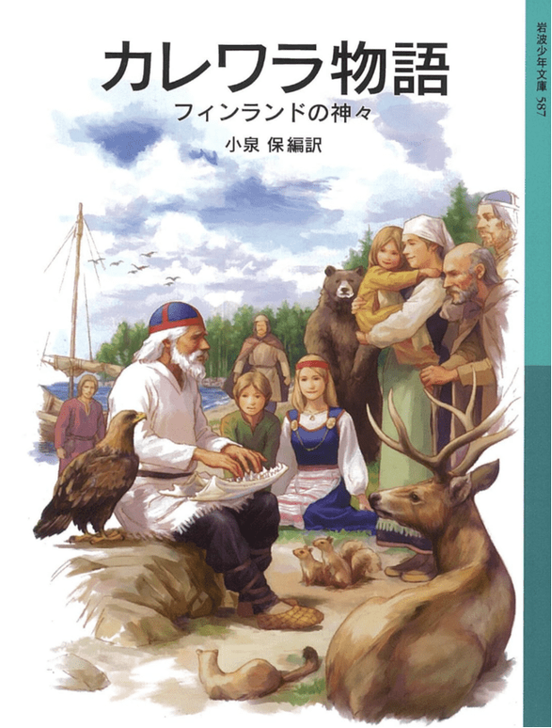 In postwar Japan, the Kalevala settled into a dual role as juvenile literature and a world classic. A fifth- and sixth-grade reader published in 1951 retold Rune 2 of the Kalevala almost faithfully but added a clear moral line, warning that the giant oak is “the devil’s tree” that must be cut down at once, while a 1955 collection of world classics for children retold Aino’s story with only minor plot shifts. A large multi-volume collection of world literary masterpieces for boys and girls issued between 1964 and 1968 placed a retelling of Väinämöinen’s story in its first volume alongside tales comparable to those found in the Arabian Nights and Greek Myths. In his commentary, Michio Namekawa characterized the work as “farmers’ literature” shaped by northern nature and linked its cosmogony to echoes in Japan’s oldest surviving chronicle, compiled in the early 8th century.